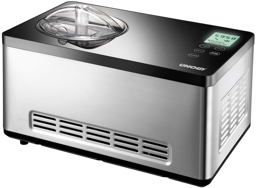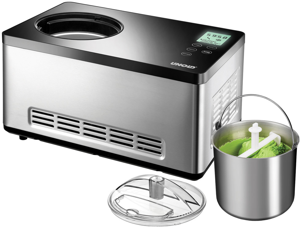 La gelatiera Gusto di UNOLD può preparare circa 2,0 litri di gustoso gelato in una sola volta, e utilizzando ingredienti pre-refrigerati è pronto in circa 30 minuti (es. gelato alla crema). Ciò è reso possibile dal robusto motore e dal compressore completamente automatico e auto-raffreddante per un raffreddamento continuo (fino a -35 ° C ) . L’involucro di questa elegante gelatiera è in acciaio inossidabile come lo è il cestello rimovibile e quindi sono facili da pulire. Durante la miscelazione del gelato, attraverso una comoda apertura nel coperchio si possono aggiungere pezzi di noci, scaglie di cioccolato , uvetta o altri ingredienti. Tra le altre cose, il timer può essere attivato da 5 a 60 minuti tramite l’intuitivo pannello di controllo touch e l'ampio display LCD fornisce informazioni sul tempo rimanente. Con il manuale di istruzioni si trovano anche deliziose idee di ricette | ![]() |