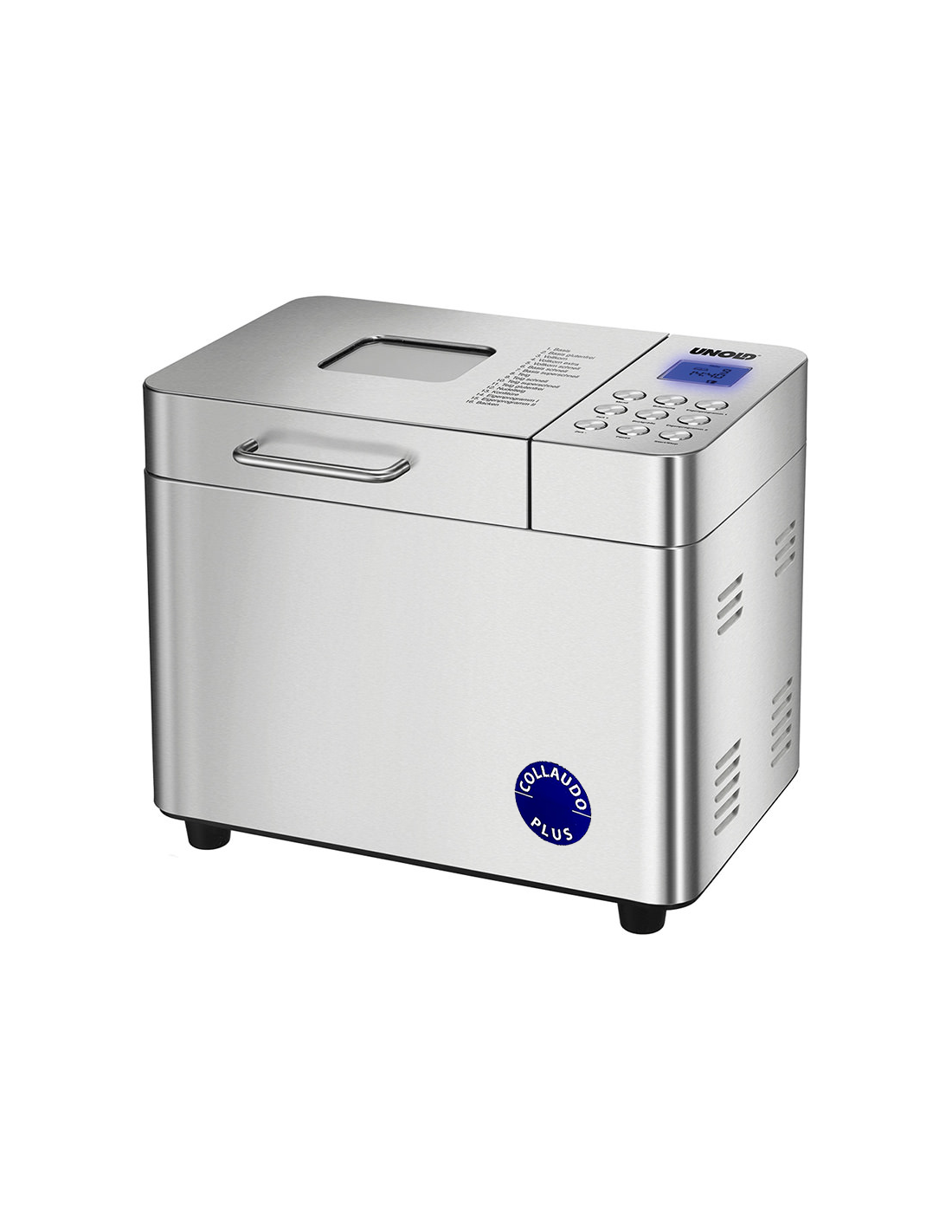 Questa BackMeister viene sottoposta nei nostri laboratori ad un approfondito ulteriore collaudo prima della consegna al cliente per verificare ed escludere che vi siano eventuali imperfezioni di fabbrica. Questo ci permette di estendere la garanzia da 2 a 3 anni, e viene contraddistinta dal “bollino blu” che ne garantisce il “Collaudo Plus”. La BACKMEISTER® Edel produce pagnotte di pane tra 750 e 1.000 grammi (anche senza glutine) con la semplice pressione di un pulsante. La teglia estraibile all'interno dell'alloggiamento in acciaio inossidabile è facile da pulire grazie al rivestimento ceramico Whitford. Attraverso l'ampia finestra di visualizzazione è sempre possibile controllare il processo di cottura, che può essere pre-programmato per un massimo di 15 ore tramite il pulsante Timer sul display LCD. Il grado di doratura e la dimensione della pagnotta possono essere selezionati nei programmi di cottura e, al termine del processo di cottura, il pane verrà mantenuto caldo fino a ca. 60 minuti. Oltre ai misurini vengono forniti anche l’accessorio per rimuovere la paletta impastatrice dalla pagnotta e le istruzioni per l'uso dove si trovano ottime ricette! | ![]() |